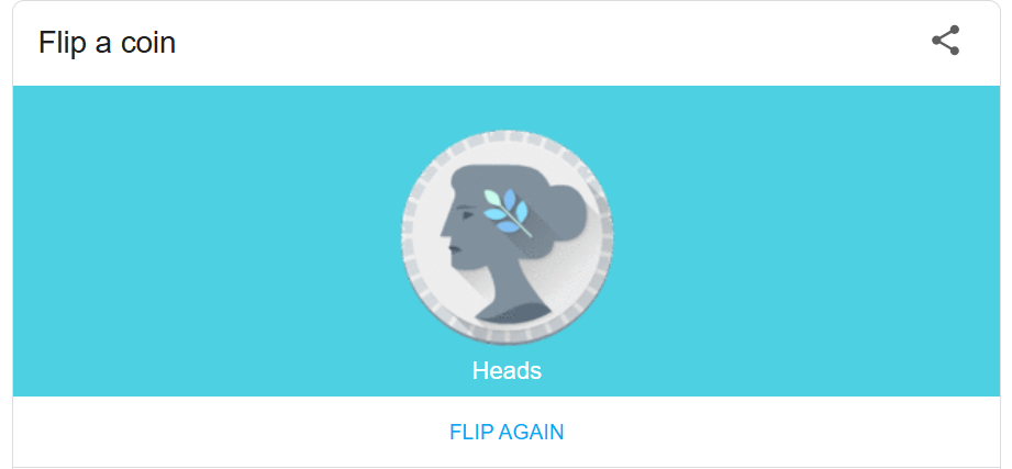 실제 동전을 여러 번 던져도 같은 면이 연속으로 나오는 경우가 있는 것처럼, google 동전 던지기 역시 무작위 결과이기 때문에 특정 결과가 반복될 수 있습니다.